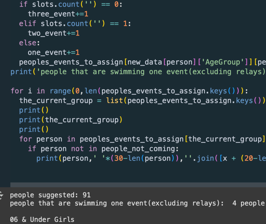 Swim team analysisThis code helped my swim team (newark bluefins) choose who to go to the championship race
